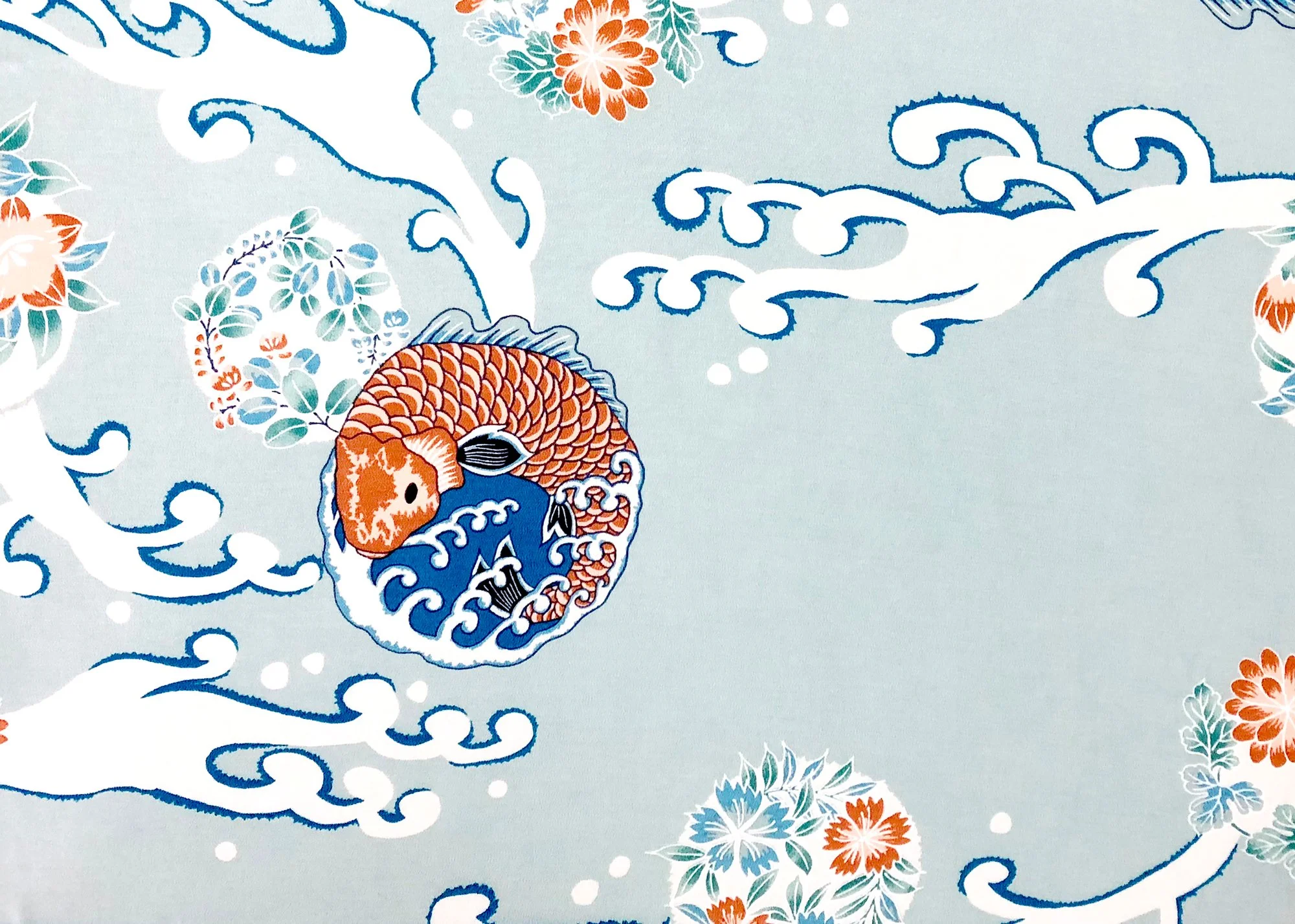 This design features carp moving boldly through surging waves—an image that has long been appreciated for its sense of strength and motion. The carp itself is considered an auspicious symbol, representing determination, resilience, and the ability to overcome challenges. Its presence in the pattern conveys a spirit of perseverance and forward momentum.