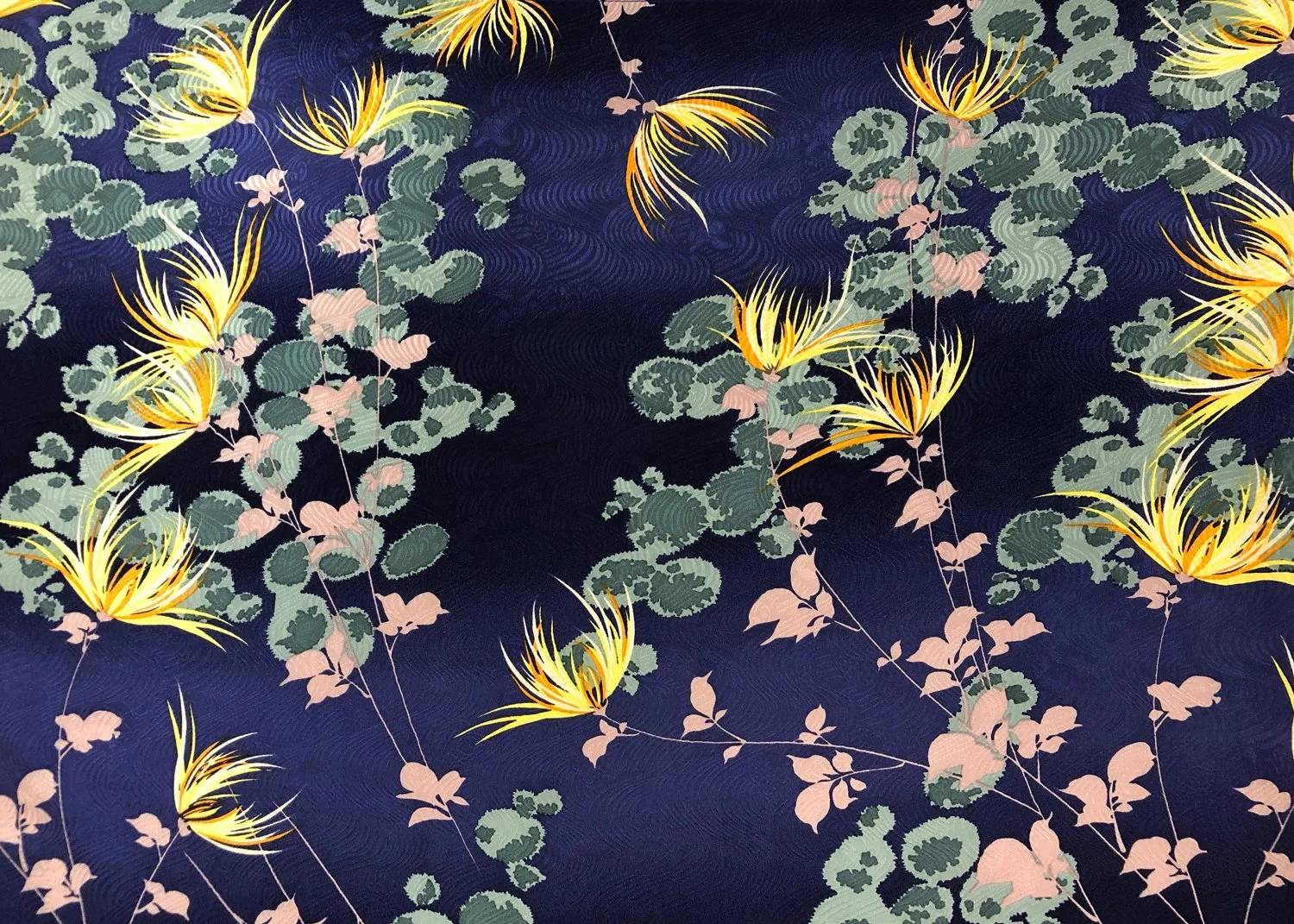 The pattern itself is expressed in a simple and balanced style, allowing each element to stand out while maintaining overall harmony. The pairing of chrysanthemums and evergreen pine creates a meaningful contrast—soft elegance alongside steadfast strength.