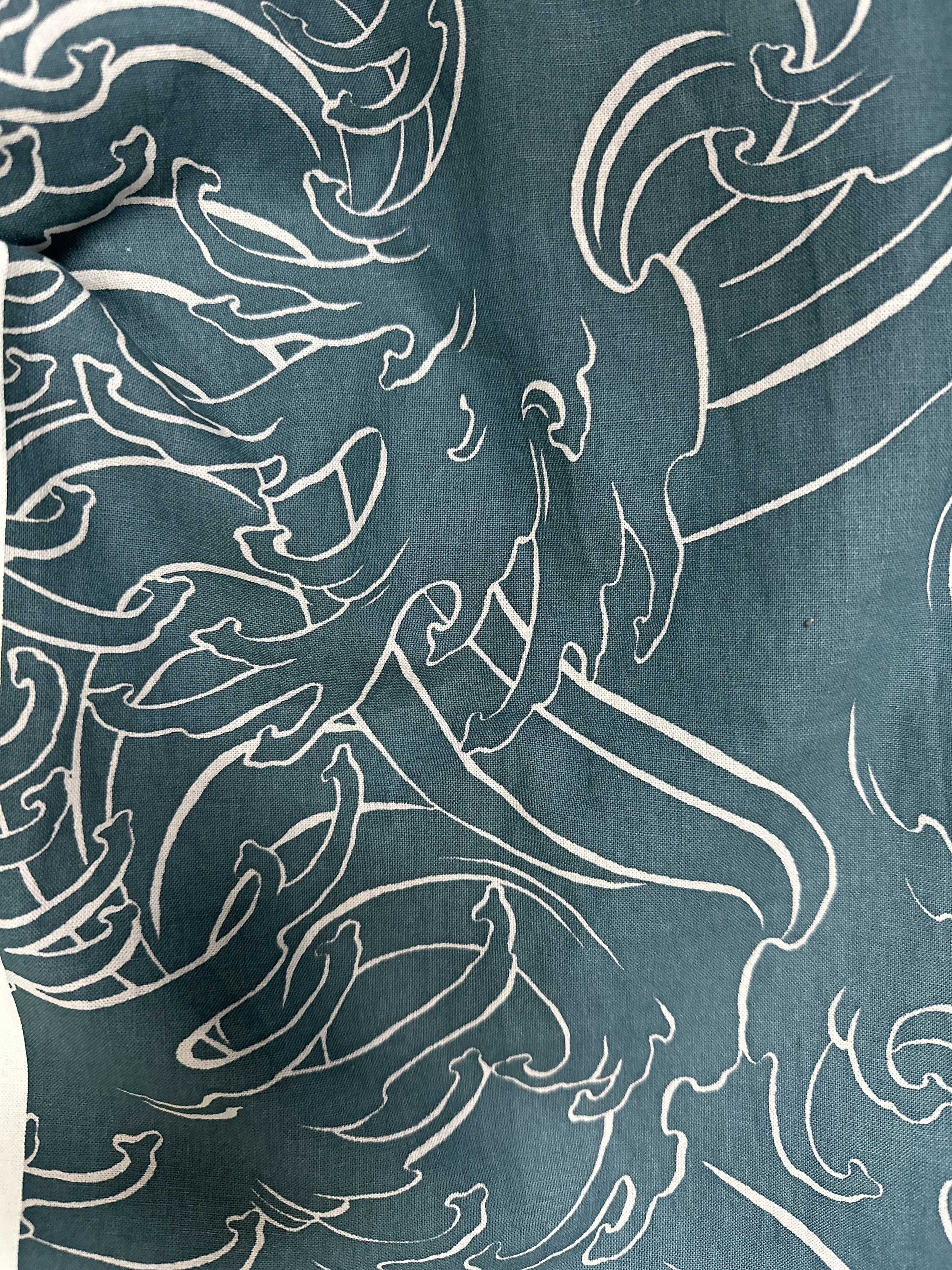 Yuzen dyeing expresses the powerful wave pattern unique to Japanese carvers.