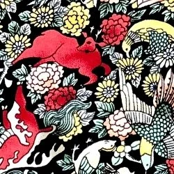 This pattern is a modern reinterpretation of Pagong’s classic designs, newly illustrated by a contemporary designer. It captures Pagong’s traditional motifs through an entirely fresh and pop-inspired sensibility, offering a new perspective on Yuzen-style patterns.