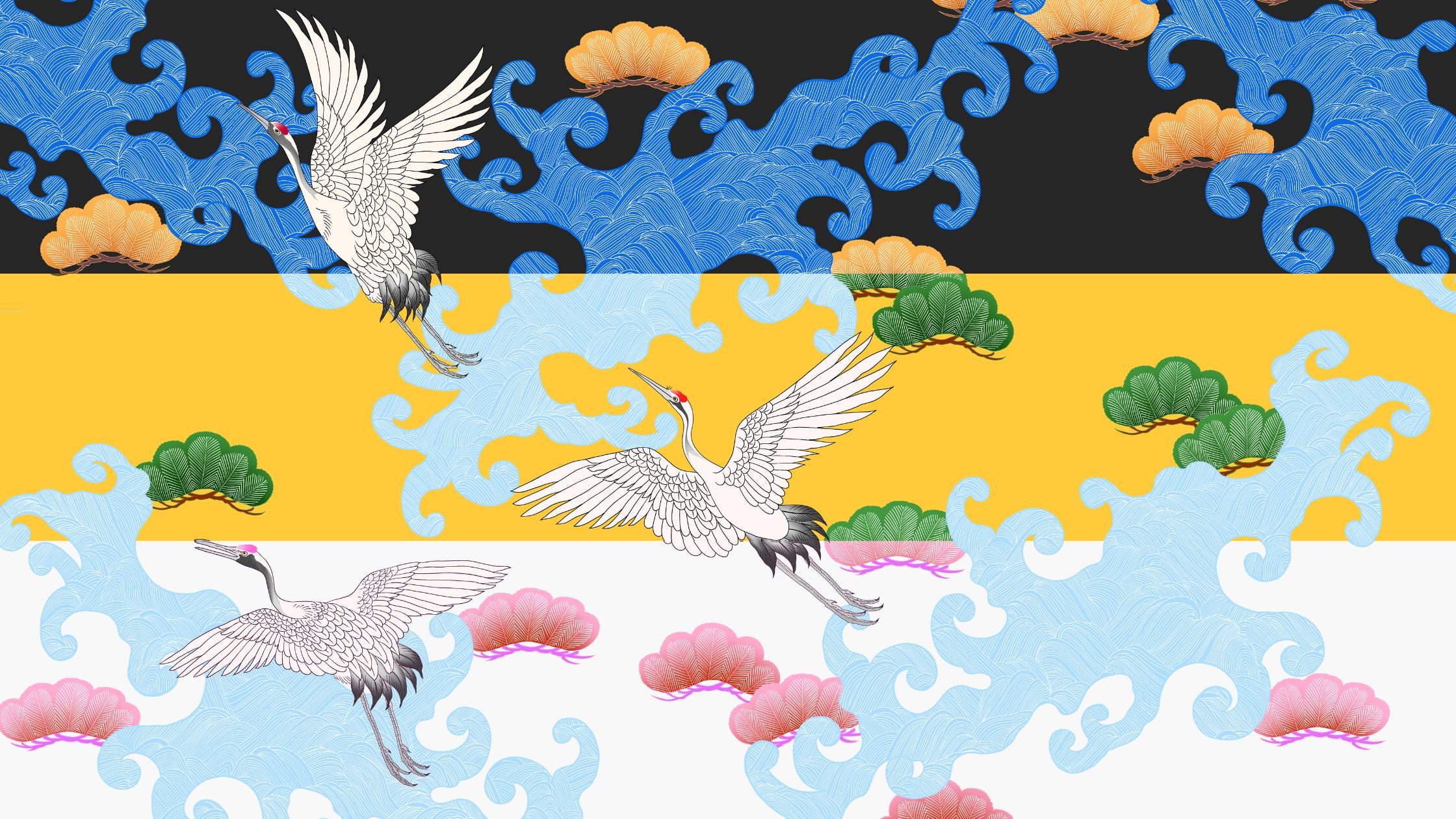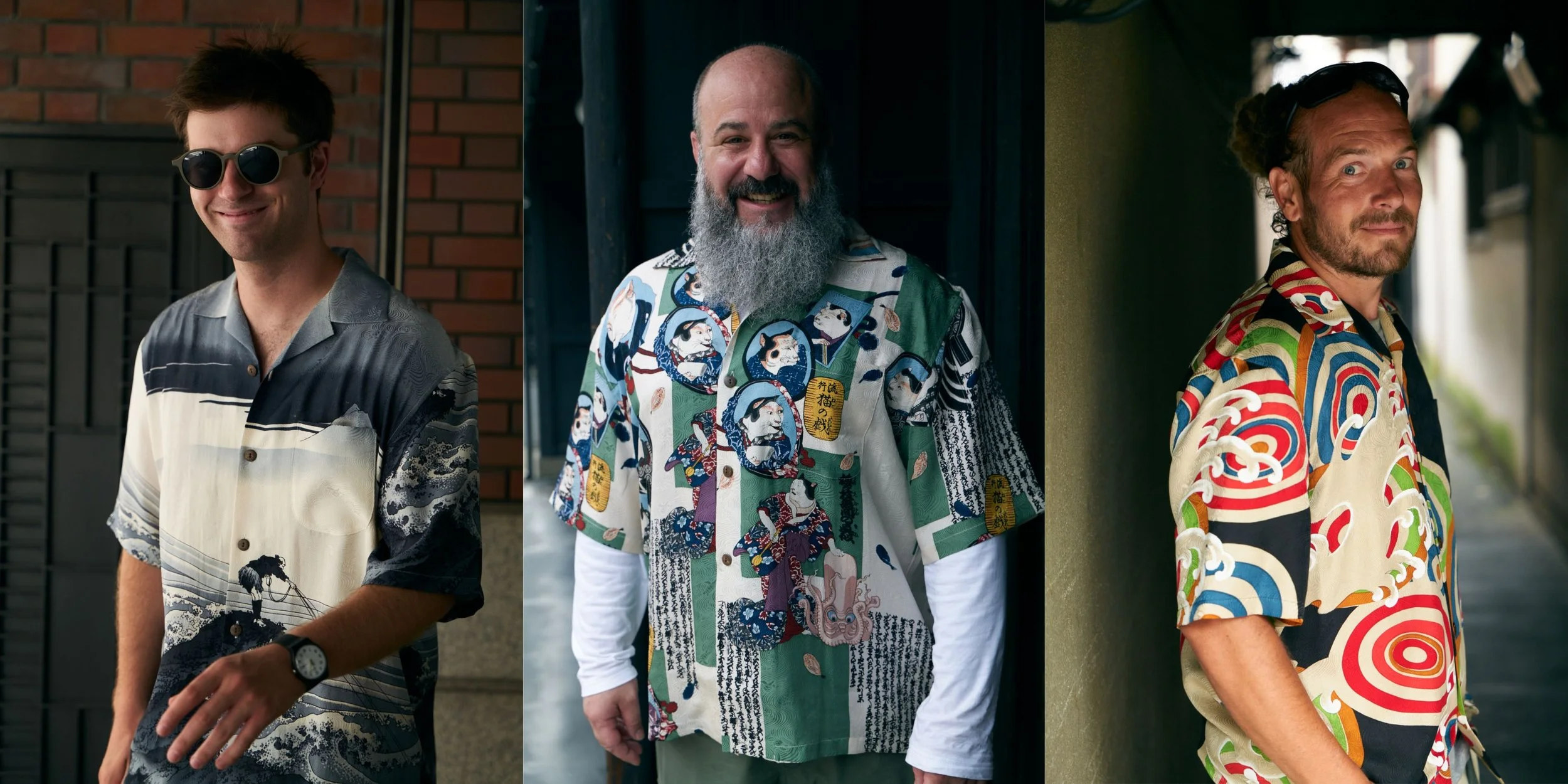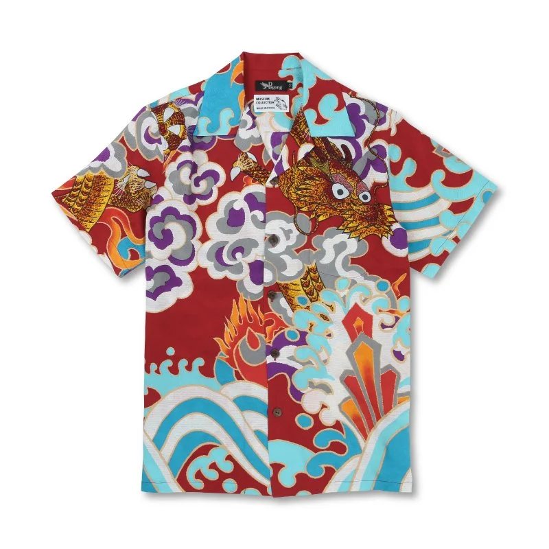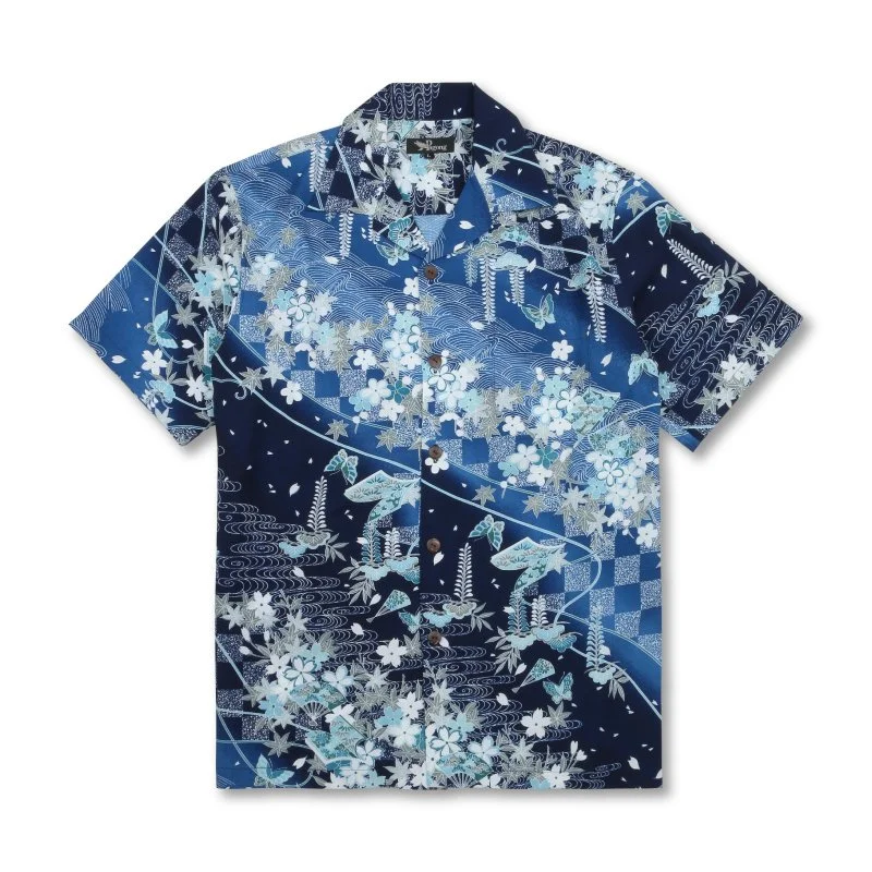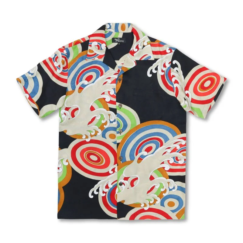Inspired by traditional motifs, the Pine Wave and Crane pattern comes to life in three silk aloha shirt designs: black, gold, and soft milky tones. Each color tells its own story—expressing strength, elegance, and a gentle warmth in perfect harmony.