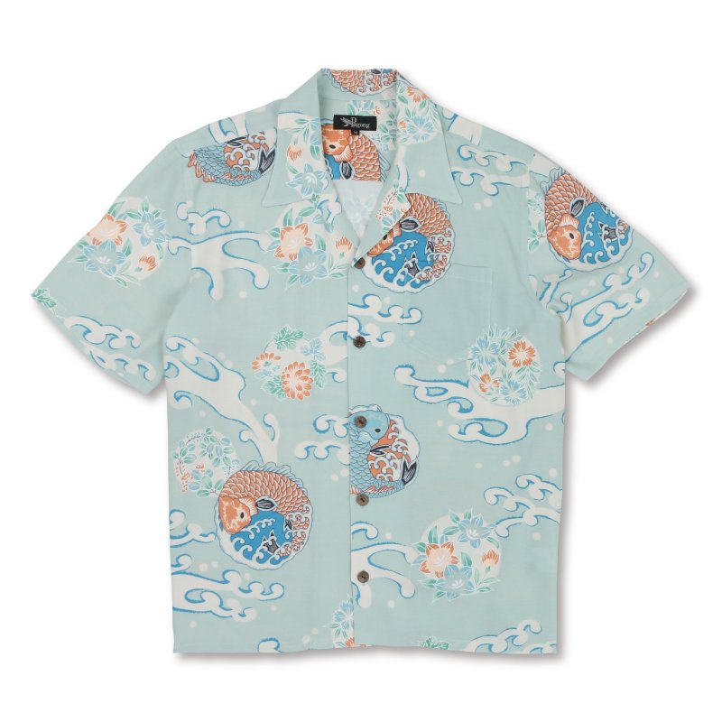 Inspired by traditional motifs, the Corn pattern comes to life in two silk aloha shirt designs: golden corn with a light green base, and soft milky corn with a light blue base. Each color tells its own story—expressing prosperity, serenity, and natural elegance in perfect harmony.