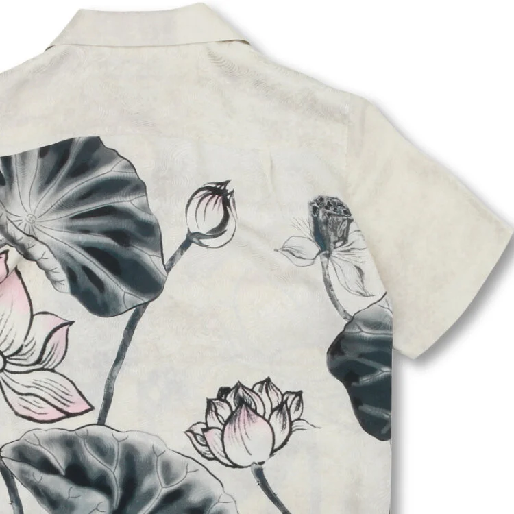All of our 100% silk aloha shirts have our logo of “sea turtle and wave”, woven into our custom-made silk fabric.