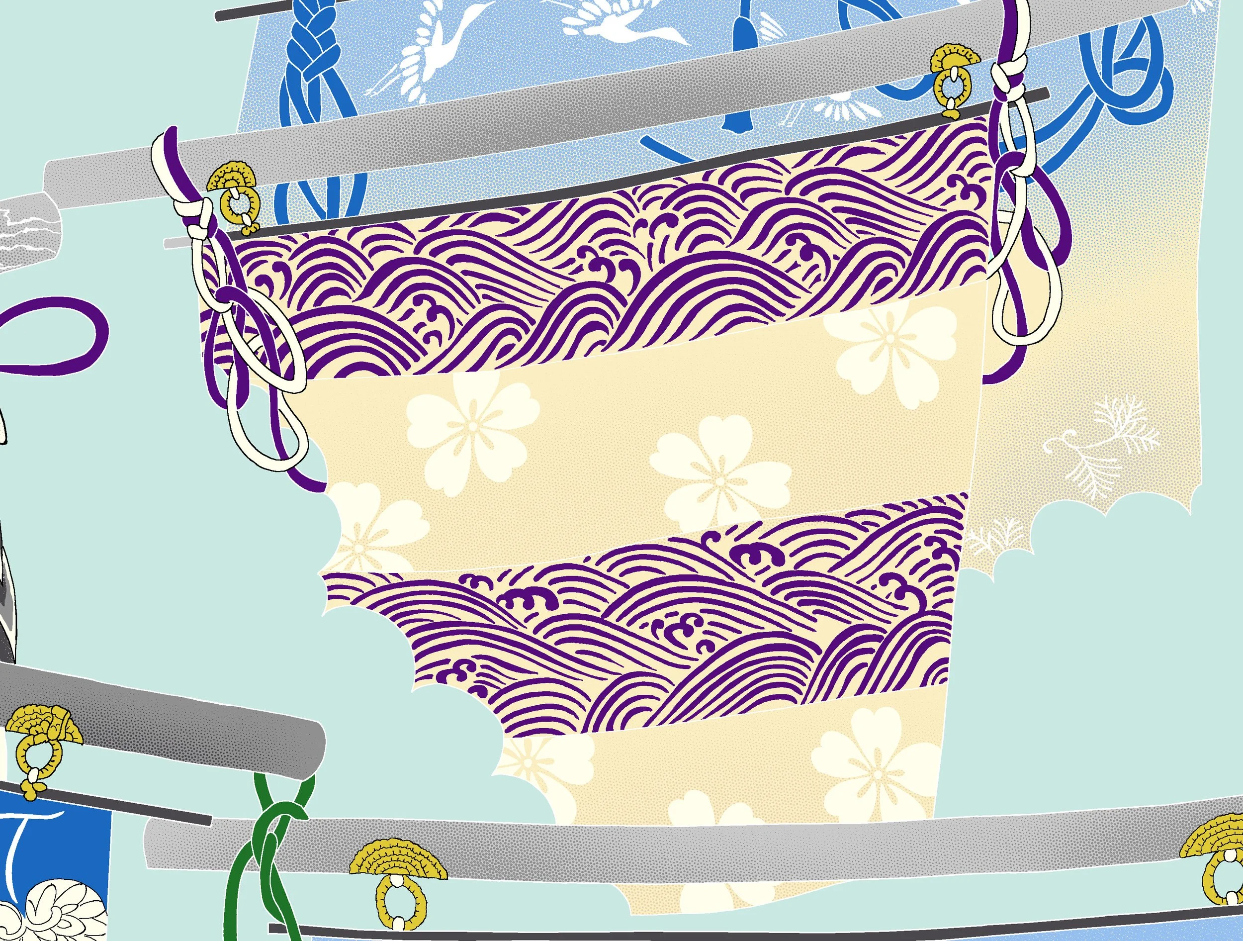 The folding scrolls in this exquisite collection showcase three iconic motifs from Japanese culture: waves, sakura (cherry blossoms), and cranes.