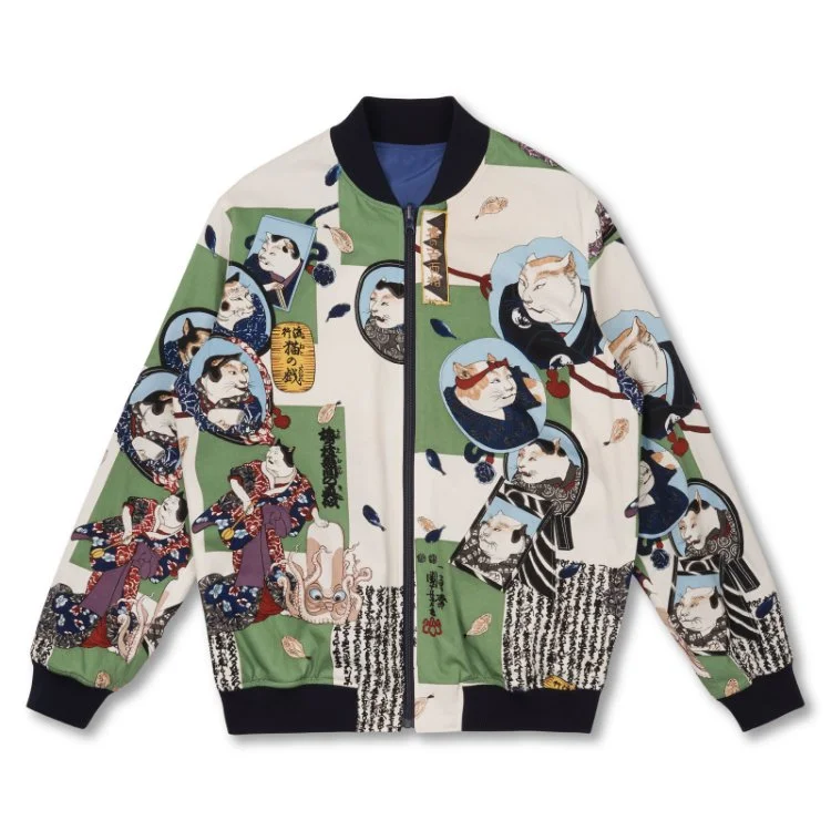 One of three Museum Collection patterns at Pagong inspired by great ukiyo-e masters of the Edo-era, “Kuniyoshi Loves Cats!”. The composition for this pattern is actually based on two ukiyo-e works by Kuniyoshi Utagawa who lived from 1797 to 1861, in Edo (modern-day Tokyo).
