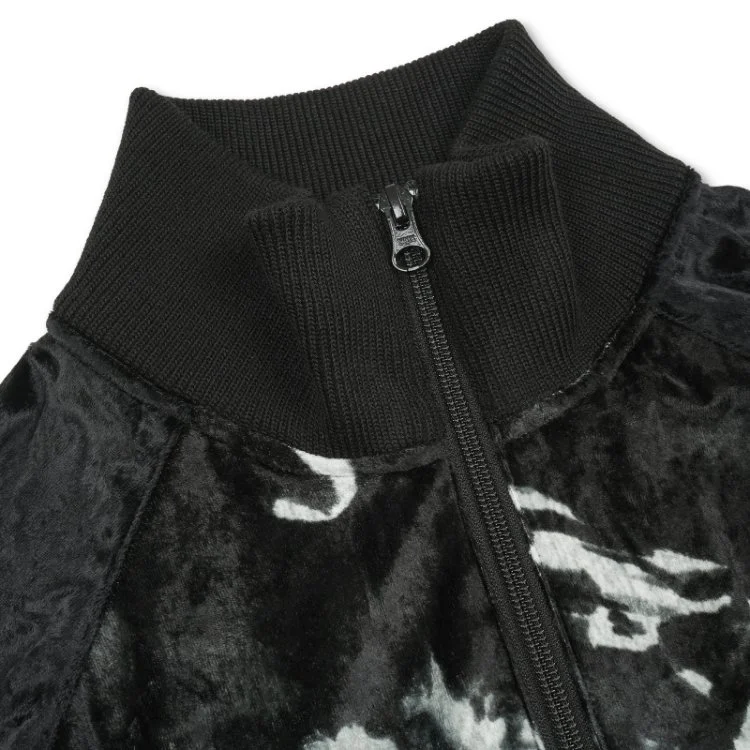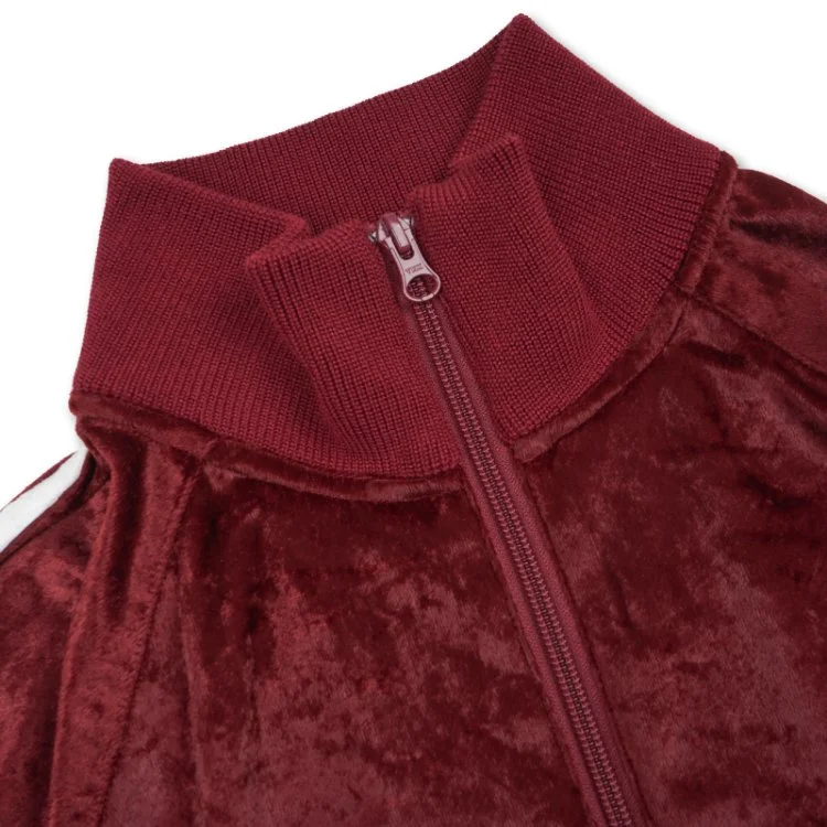 Crafted from glossy, smooth velour fabric, this jacket offers a soft, luxurious texture with a subtle sheen that elevates everyday wear. Designed with both movement and comfort in mind, it brings a sporty yet elegant feel, making it perfect for active moments as well as relaxed, casual styling.