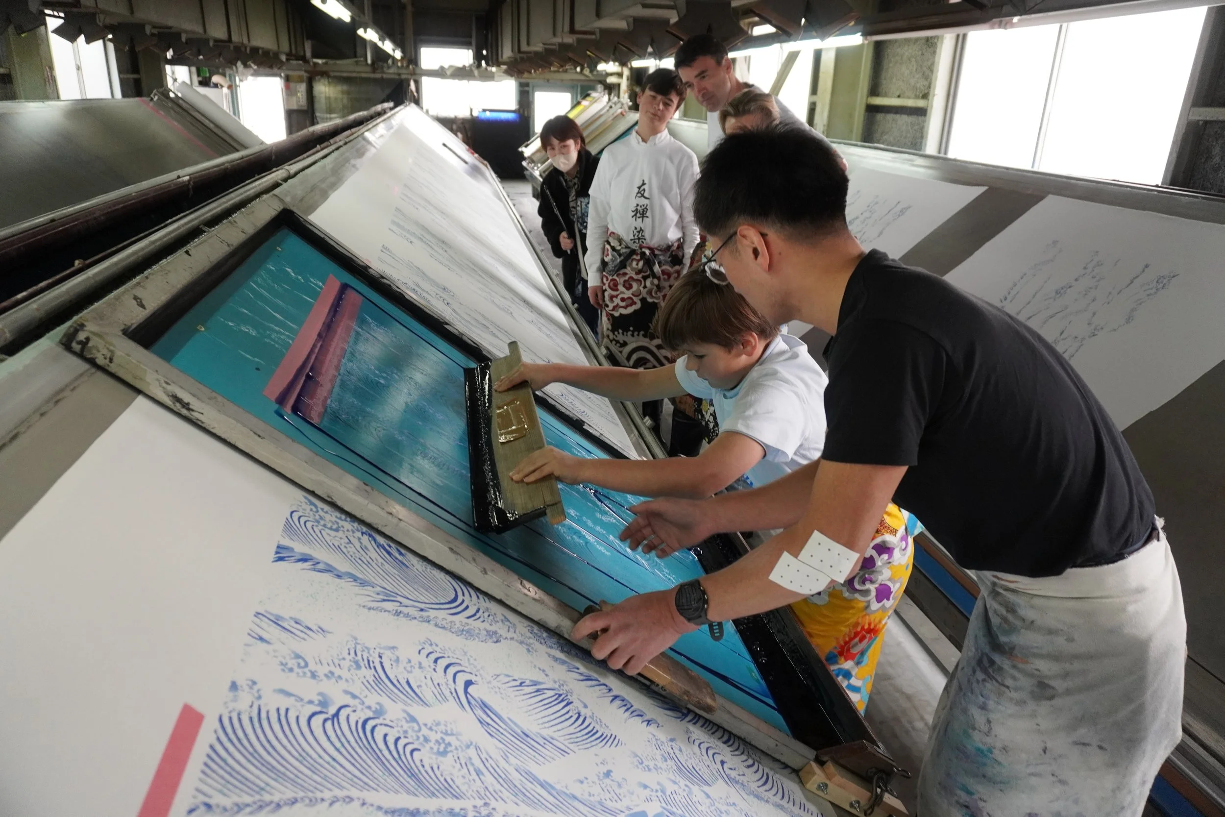 Tour starts at Pagong main shop → Making dyes room → Dyeing factory → Screen storage space →Dyeing process