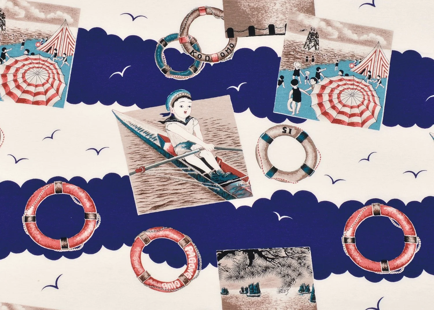 Notably, the boy depicted in the boat is dressed in modern Western-style clothing, reflecting the lifestyle of wealthy families at the time. The design offers a fascinating glimpse into the aspirations of ordinary people and captures the spirit of a society transitioning into a new era.