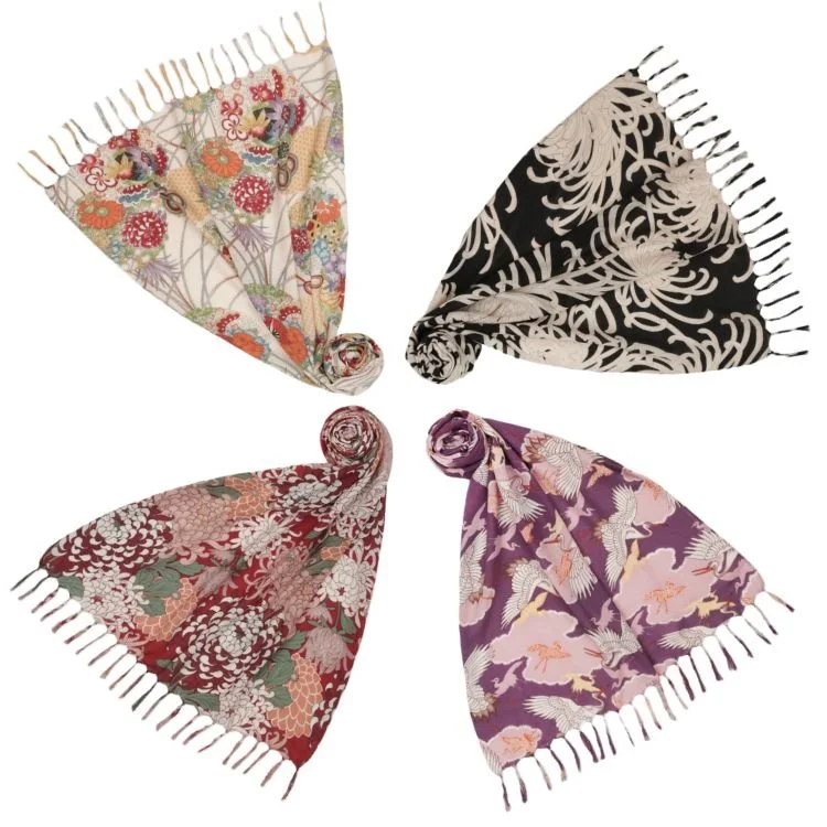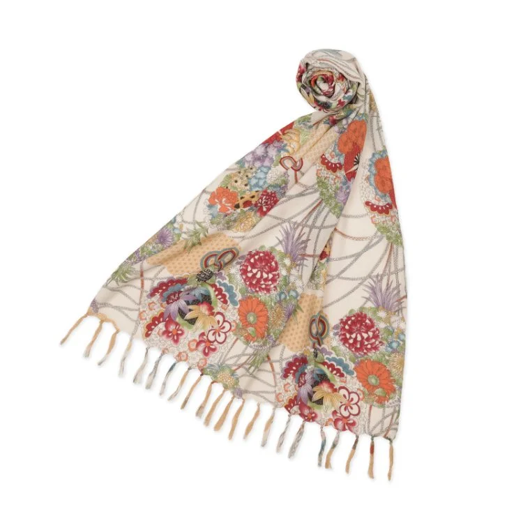 At the heart of these scarves is an exceptional fabric woven by Mitsuboshi Keito, one of Japan’s legendary textile manufacturers, renowned for their mastery of fine yarns and blending techniques. This exclusive triple-blend combines 60% wool, 30% silk, and 10% cashmere, achieving a rare balance of warmth, softness, lightness, and refined luster.