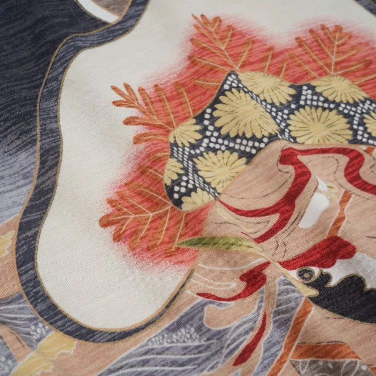 The Great Wave is Hokusai’s mostcelebrated work and with no doubt considered the most recognizable work of Japanese art in the world. This extraordinary pattern was dyed using the kimono technique “Kyoto-Yuzen”.